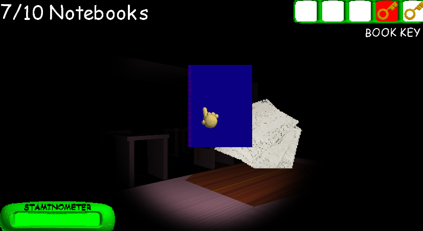 Ok but besides that bit of feedback I felt like the Scary Stuff was just alright. While I liked the ambience of Scary Mode there wasn't much tension in terms of gameplay as keeping away from Blind Baldi is easy if you're patient and the ending jumpscare is pretty much an expectation at this point. Maybe if more was done with other characters like the eyeless Anim8or bird it would be more interesting but as it stands it's just a simple stealth section in the dark with most of the challenge coming from remembering where your keys and last notebooks are.